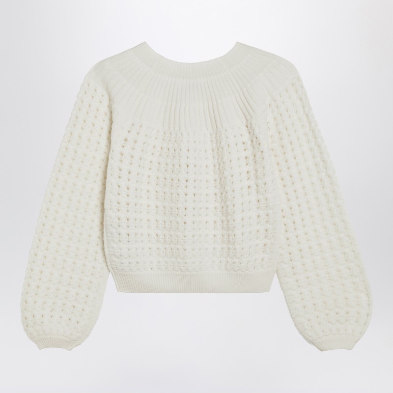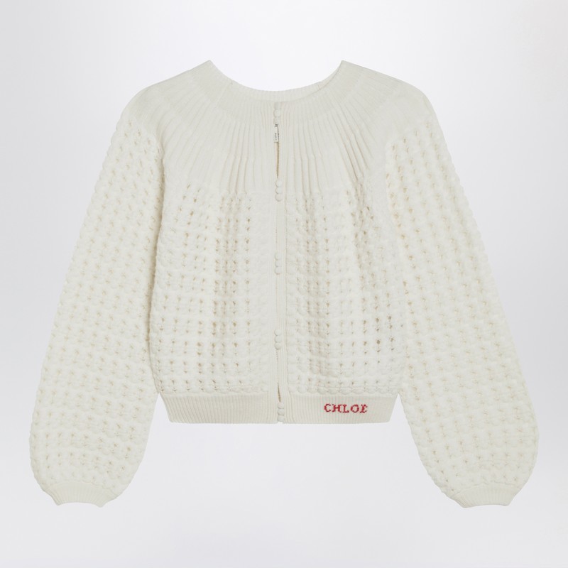 | NAME : Milk-colored wool and cashmere knit cardigan | |
